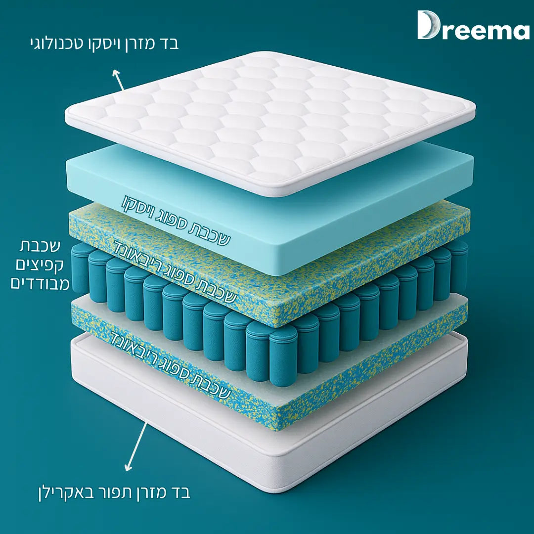 מזרן Dreema Hug קפיצים מבודדים ויסקו ג'ל רך במיוחד